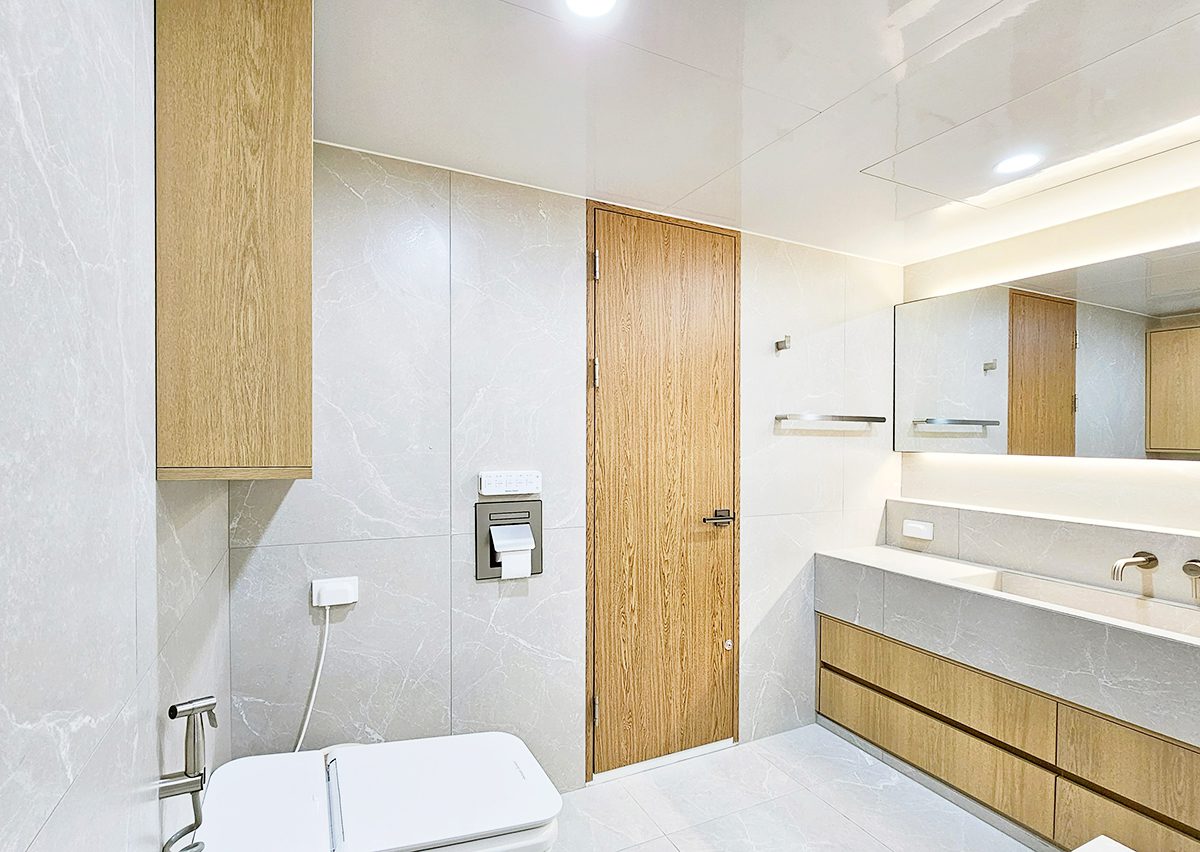 조적 세면대와 매립수전등 고급스러운 자재로 호텔급 욕실 구현