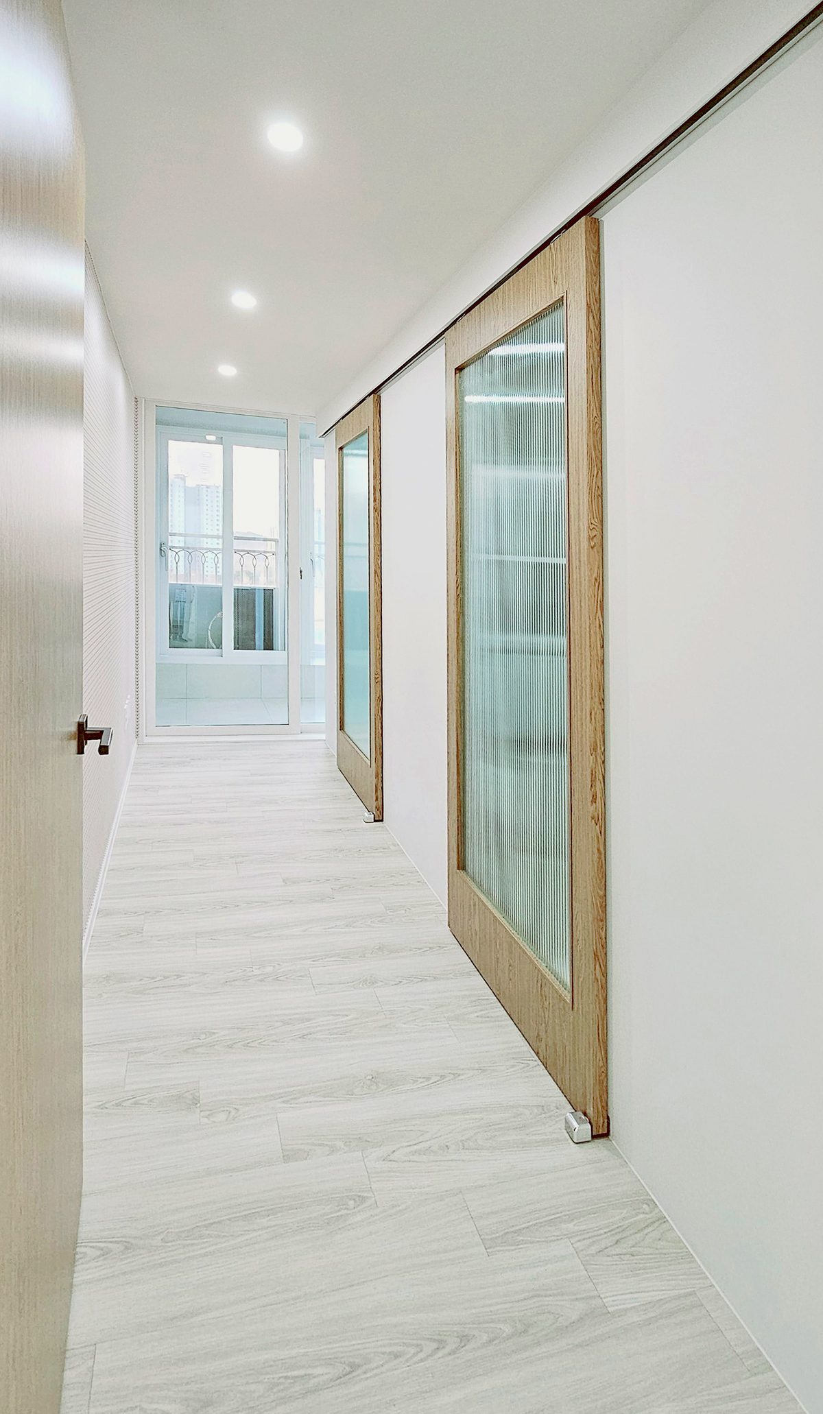 복도 레일 와이어 시공으로 액자 및 소품의 자유로운 배치 가능
