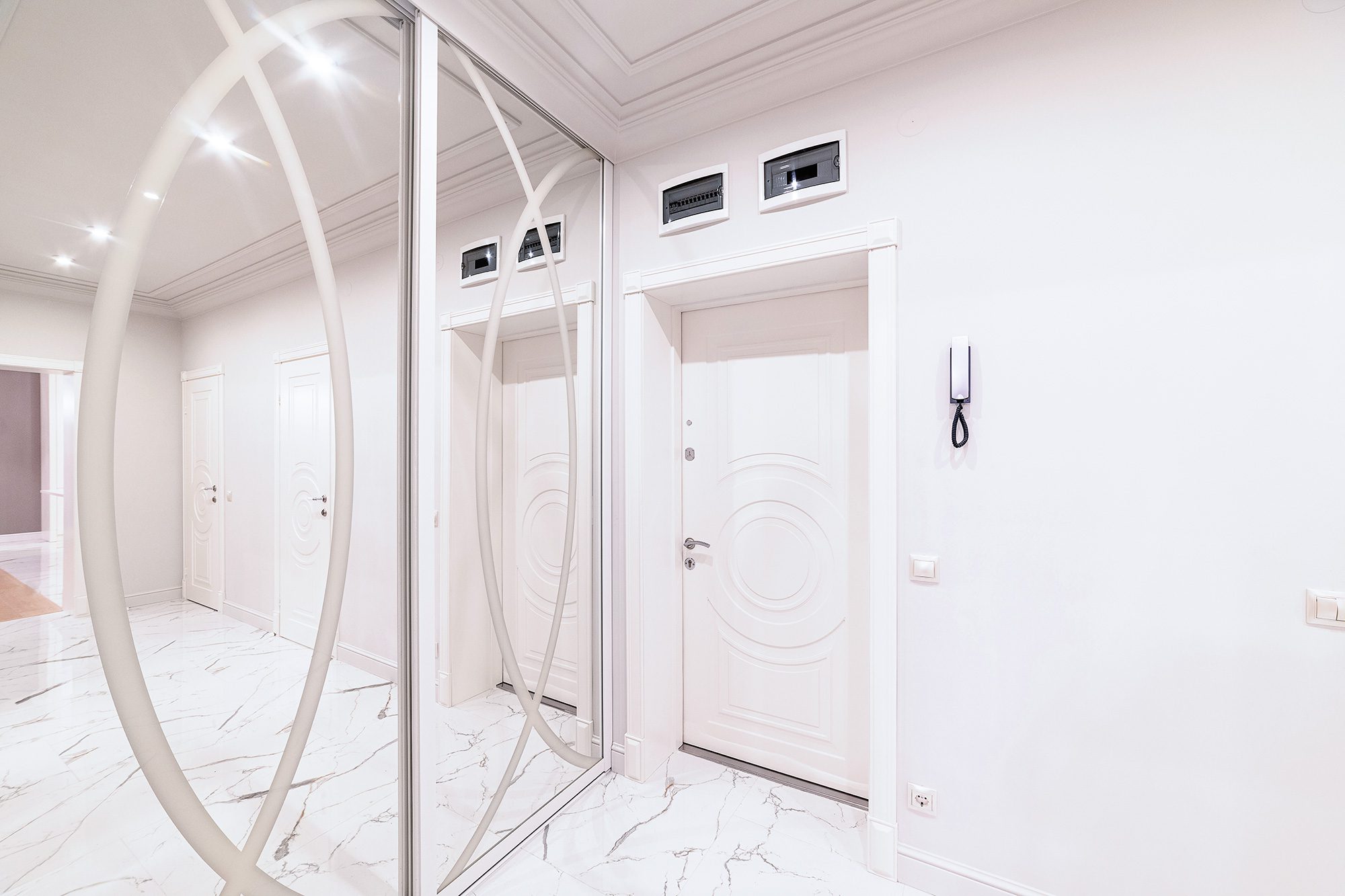 최근 현관 인테리어의 트렌드는 자주 신지 않는 신발, 우산, 열쇠와 같은 자주 사용하는 물건들을 신발장 한켠에 자리를 마련하여 수납하는 형식으로 신발장에서는 동선이라는 말 자체가 필요 없을 정도로 깔끔하게 정돈하는 것이 트렌드로 자리잡히게 되었습니다. 거울 또한 따로 두지 않고 신발장 자체에 부착하여 불필요한 공간을 사용하는 일을 줄였습니다.